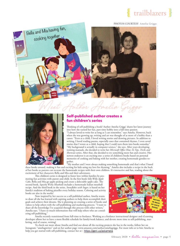 You can read more about my journey of how I turned a fun, part-time hobby into my life’s passion in the 2020 issue of Bella Magazine. Here’s an excerpt: “I always loved to write for as long as I can remember,” says Amelia. However, back when she was growing up, writing and art was thought of as more of a hobby than a career. “Even as a child, I loved writing stories and drawing pictures. In addition to writing, I loved reading poems, especially ones that contained rhymes. I even saved stories that I wrote as a child, hoping that I could turn them into books someday.”